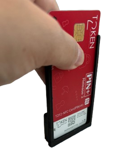 Insert your badge card into the designated slot on the badge holder. The Token2 device can then be conveniently stored in the compartment beneath the badge. This streamlined design allows for quick and effortless access to your credentials whenever necessary.
